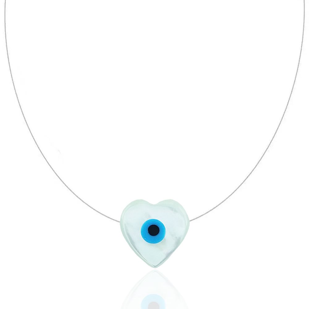 Colar Olho Grego Coração Madrepérola Fio De Nylon